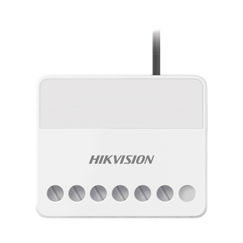 Relevador inalámbrico DS-PM1-O1L-WB de HIKVISION, ideal para sistemas de alarma. Posee 1 salida NO/NC (0 a 36Vcc, máx. 5 A), 1 entrada de alarma 24 horas, voltaje de operación de 7Vcc a 24Vcc y opera entre -10° a 55°C. Su comunicación bidireccional de 433 MHz y pantalla LED facilitan su uso, asegurando una protección profesional en hogares, oficinas y más.