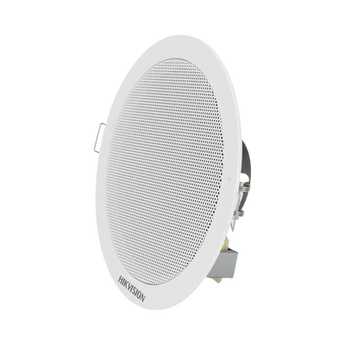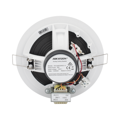 Altavoz montaje en plafón DS-QAE0206G1-V 6 watts 100V Ø 170 mm con sonido claro y brillante. Especificaciones: Entrada de audio: 100V, Potencia: 6W, Dimensiones: Ø 170 mm × 64 mm, Peso: 0.468 Kg, Nivel máximo de sonido: 96dB. Características: Compatible con amplificador DS-QAE0A60G1-VB, conectividad Bluetooth incorporada. Beneficio: Ideal para música ambiental y mensajes de voz.