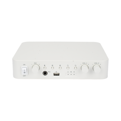 - 2 Salidas 30 W 4 ohms a 8 ohms o 2 salidas 100V COM.