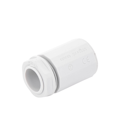 Conector PVC 50 mm DX-43-250 IP65 temperatura -24 a 60°C auto-extinguible libre de halógenos, ideal para instalaciones eléctricas. Conector de tubería PVC de 50 mm a caja IP55, diámetro externo de 50 mm, auto-extinguible, grado de protección IP65, operativo entre -24 a 60°C. Resistente y seguro ante el agua y polvo.