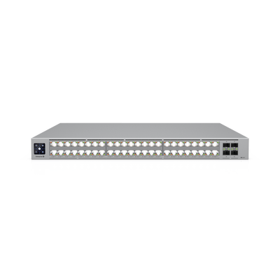 El Switch empresarial ECS-48-POE de Ubiquiti cuenta con 32 puertos 10 GbE y 16 puertos 2.5 GbE, todos PoE+++ con capacidad de 90 W. Con 4 puertos SFP28 de 25G y una capacidad de switching de 920 Gbps, este diseño de alta disponibilidad incluye módulos de alimentación y ventilador intercambiables en caliente, ideales para redes empresariales que requieren eficiencia y gestión avanzada.