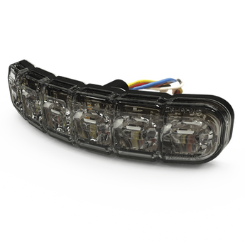 Luz perimetral ED3794RW 12-24 V 0.8 A IP69K Montaje flexible. Con 12 LEDs Ultra Brillantes y 69 patrones de destello, esta luz ofrece altísima visibilidad. Su instalación es versátil en superficies planas o curvas de hasta 120° y presenta resistencia al amarillamiento. Certificaciones: SAE CLASS I y II, IP67 e IP69K.