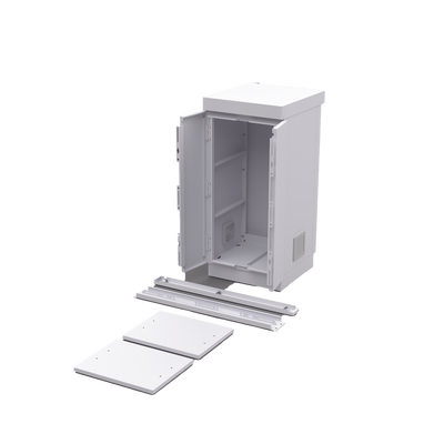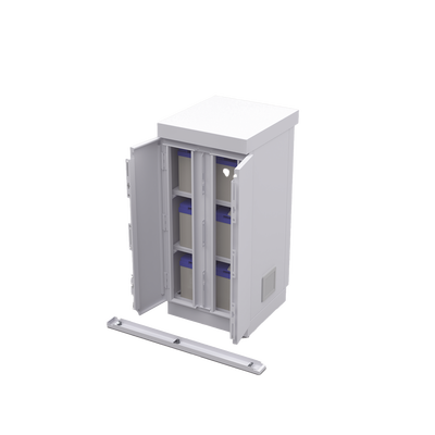 Gabinete de seguridad EFCB051106W de lámina de acero galvanizado de 775 x 755 x 558 mm y 52 kg. Ideal para resguardar hasta 6 baterías PL110D12. Cuenta con mesa interior y cierre seguro con dos candados.