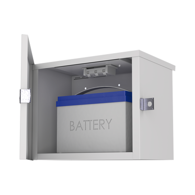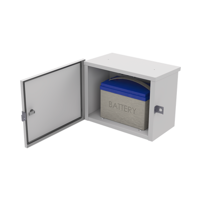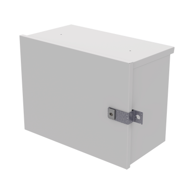 Gabinete de acero galvanizado EI-PCB-04-04-03-W3 de 550 x 420 x 290 mm, con peso de 7.86 kg. Ideal para instalación en exteriores. Resistente a la corrosión y diseño optimizado para sistemas de energía solar autónomos. Color beige con acabado duradero, compatible con montaje en poste y en piso.