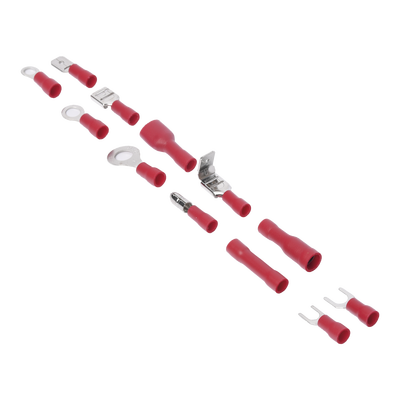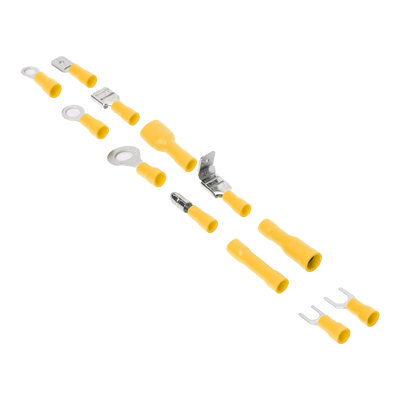 Juego de terminales EP-TKM-580: 580 piezas de plástico polipropileno, cuerpo en aleación de cobre/latón y revestimiento chapado en estaño. Terminales variados para diferentes aplicaciones y diseño robusto. Ideal para conexiones seguras y confiables en proyectos eléctricos.