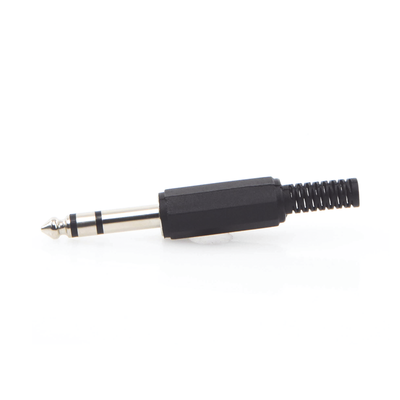 Conector macho estéreo EP-TRS 6.35 mm plástico negro soldadura 28awg-14awg diseño resistente con alivio de tensión