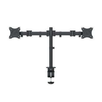 Montaje de escritorio articulado EPS710ED2 para 2 monitores de 13 a 27 pulgadas, carga máxima 10 kg. VESA 75x75 y 100x100, proporciona inclinación de +15º / -15º y giro de 360º. Perfecto para mejorar ergonomía y productividad al trabajar con múltiples pantallas, fabricado en acero resistente.