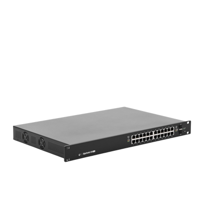 El Switch administrable ES-24-250W de UBIQUITI es un robusto switch PoE+ de 24 puertos Gigabit con 2 puertos SFP, diseñado para redes empresariales. Ofrece 38.69 Mpps de tasa de reenvío, soporta PoE y PoE+ y operaciones en un rango de temperatura de -5 a 40° C. Ideal para gestionar múltiples dispositivos, permite un fácil monitoreo a través de su interfaz gráfica.