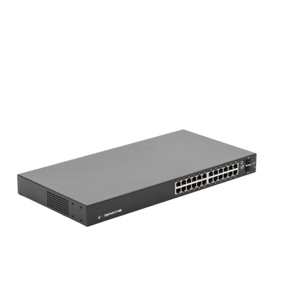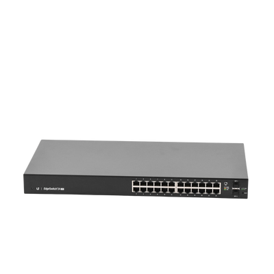 Switch administrable 24 puertos Gigabit UBIQUITI ES-24-LITE con 24 puertos 10/100/1000 Mbps, 2 SFP, 38.69 Mpps de forwarding rate. Ofrece interfaz gráfica Web UI y SSH para fácil manejo. Ideal para redes empresariales.