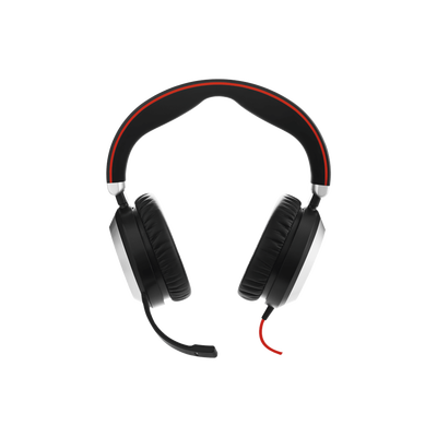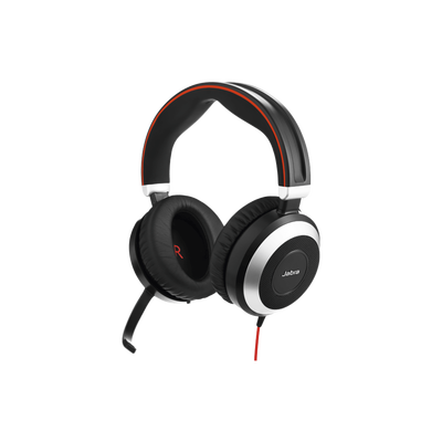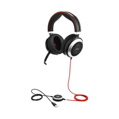 Auriculares Jabra EVOLVE-80-MS cancelación activa de ruido 3.5 mm compatible con móviles y pcs indicador de ocupado en rojo transferencia de llamadas inteligentes