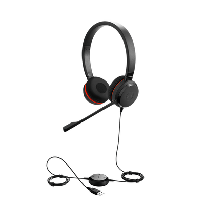 Auricular Jabra EVOLVE20SESTEREOMS banda ancha micrófono cancelación de ruido plug and play facilidad en gestión de llamadas acceso directo a funciones