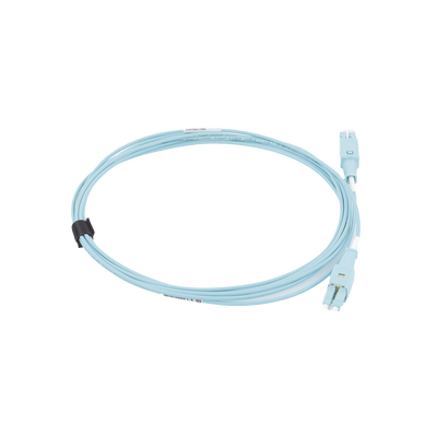 Jumper de fibra óptica FBP-LCLC5V-03AQ OM4 con garantía de 20 años. Cumple con estándares IEEE 802.3 10 Gigabit Ethernet y normas IEC-60793-2-10. Su diseño de bota push-pull facilita el acceso y su menor diámetro reduce la congestión en la instalación. Ideal para administración en entornos de alta densidad, optimizando el rendimiento de la red multiservicio.