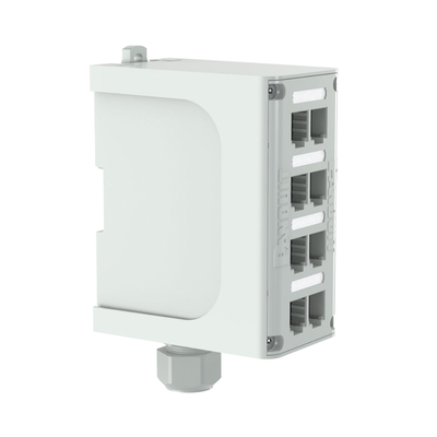 El panel de conexión de fibra óptica de riel DIN de 8 puertos IndustrialNet™ proporciona protección de fibra óptica. Puede montarse en un riel DIN estándar de 35 mm y bloquearse en su lugar con seguros ajustables, y están diseñados para permitir su montaje en una superficie plana. Este gabinete de montaje en riel DIN incluye un sujetacables PG21 o NPT ¾”, para asegurar los cables de fibra que salen del gabinete. Cuenta con una placa frontal extraíble con cuatro porta etiquetas, etiquetas y cubiertas para identificación de puertos.