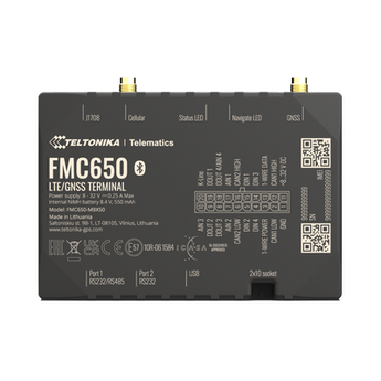 Descubre el Rastreador vehicular FMC650 4G LTE 10Mbps GNSS Bluetooth 5.0 con conectividad RS232 de TELTONIKA. Este dispositivo ofrece tecnología LTE Cat 1, cobertura 4G, un consumo de energía eficiente, y rastreo en tiempo real para la gestión eficiente de flotas.