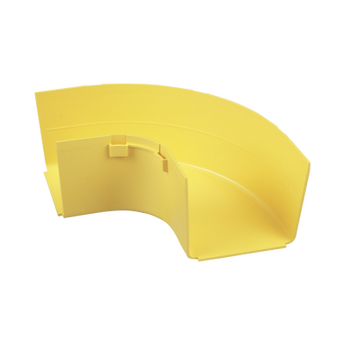 Ángulo de canaleta FRRA4X4LYL 90° amarillo ABS, diseñado para la canalización de cables. Fabricado en ABS con grado de inflamabilidad 94V-0, permite giros horizontales de 90°. Con dimensiones de altura 107.2 mm y ancho 233.9 mm, ofrece conexión a canaletas y mejora la organización de cables en espacios reducidos.