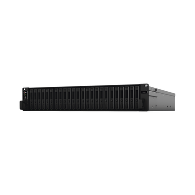 FS3400 es un Synology NAS todo flash de 24 receptáculos para uso empresarial que aumenta el rendimiento de aplicaciones sensibles a E/S, como bases de datos, máquinas virtuales o procesamiento de transacciones en línea (OLTP). Con una CPU de 12 núcleos y una conexión de red de alta velocidad, FS3400 ofrece más de 137 000 IOPS de escritura aleatoria iSCSI 4K para satisfacer la demanda empresarial de infraestructura de alta velocidad.