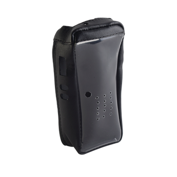Funda de piel reforzada FSMNX-200T, diseñada para radios NX-200GK y NX-300GK. Con material de piel reforzada y visor frontal transparente, esta funda protege de golpes y permite ver la pantalla sin quitar el dispositivo. Prolonga la vida útil de tu radio.