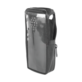 Funda de piel reforzada FSMNX-5000 compatible con radios Kenwood NX-5200, NX-5300 y NX-5400. Fabricada con material de piel reforzada y frente transparente, garantiza un diseño duradero que protege contra golpes y caídas. Permite acceder fácilmente a botones y conectores, brindando una protección efectiva a tu equipo.