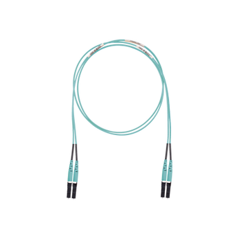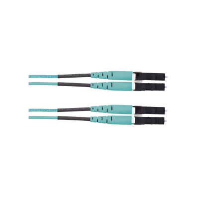 Jumper de fibra óptica FX2ELLNLNSNM010 50/125 multimodo om3 lc duplex aqua 10 metros admite aplicaciones de gigabit ethernet y 10 gigabit ethernet soporta terminación en campo con empalme de fusión