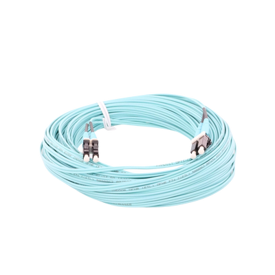 Jumper de fibra óptica multimodo FZ2ERLNLNSNM020 50/125 OM4 LC Duplex 20 metros OFNR ideal para interconexiones en centros de datos. Con clasificación Riser (OFNR), fibra multimodo 50/125, conectores LC Duplex y color Aqua, este cable facilita la instalación y asegura un rendimiento fiable en redes críticas.
