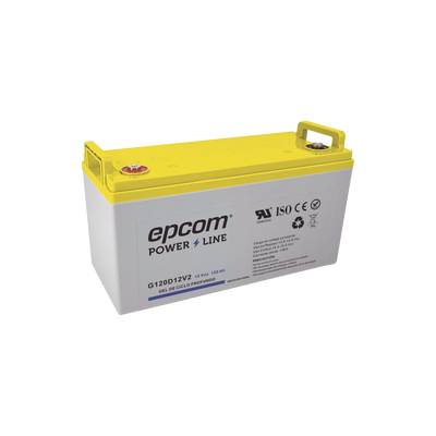 Batería de gel G120D12V2 de 12 V y 120 Ah, con corriente de carga máxima de 36 A y máxima de descarga de 1200 A. Esta batería de tipo Deep Cycle es sellada, a prueba de derrames y libre de mantenimiento, ofreciendo un rendimiento confiable en diversas aplicaciones. Ideal para sistemas fotovoltaicos y de respaldo.