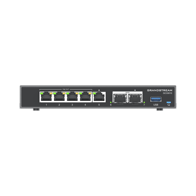 El Router Firewall PBX Switch GCC6010 de GRANDSTREAM es una solución todo en uno ideal para pequeñas y medianas empresas. Este dispositivo de nueva generación combina funcionalidades de enrutador VPN, firewall, PBX IP y switch de red. Con 5 puertos (4 PoE) y 2 puertos SFP 2.5 Gigabit, ofrece protección de seguridad de nivel bancario y una interfaz web segura y centralizada para gestión, facilitando la creación de soluciones de comunicación avanzadas al instante.