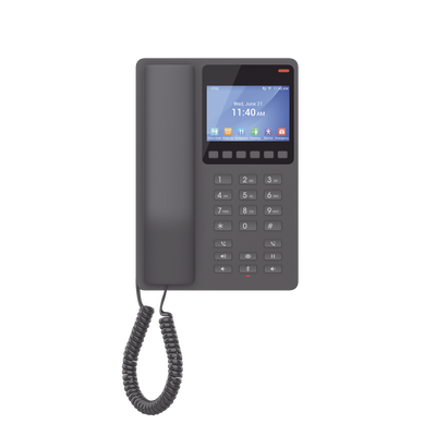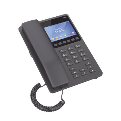 La serie GHP de teléfonos para hoteles incluye el GHP630/GHP630W y GHP631/GHP631W, teléfonos IP fáciles de usar para cualquier habitación de hotel que se pueden programar y personalizar según las necesidades de los hoteles y sus huéspedes. Los modelos GHP630W y GHP631W están equipados con Wi-Fi 6 802.11ax de doble banda integrado para permitir implementaciones inalámbricas. Esta serie cuenta con un altavoz HD, 2 cuentas/ líneas SIP, 6 teclas programables sensibles al contexto, 10 teclas de marcación rápida, conferencia de voz de 3 vías, permite el códec de voz OPUS de banda completa y proporciona un algoritmo avanzado de resistencia a la fluctuación que tolera hasta un 30% de pérdida de paquetes sin afectar la calidad de la voz. La serie GHP es compatible con GDMS, que proporciona una interfaz centralizada para configurar, aprovisionar, administrar y monitorear implementaciones de dispositivos Grandstream. Los teléfonos IP de la serie GHP se pueden instalar en un escritorio o en la pared y pueden recibir alimentación mediante PoE, un adaptador de corriente (GHP630W/GHP631W) y un puerto de carga USB tipo C. Gracias a un diseño elegante y compacto, los GHP630/GHP630W y GHP631/GHP631W son ideales para hoteles, departamentos, estancias universitarias, hospitales, tiendas minoristas y mucho más.