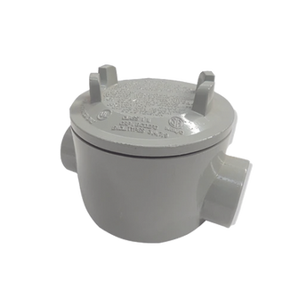 Caja a prueba de explosión GRC-0561 de 38.1 mm (1 1/2%22) con 2 salidas, volumen de 1191.5 cm3. Fabricada en aluminio libre de cobre, resistente a explosiones y polvo. Perfecta para áreas peligrosas y húmedas.