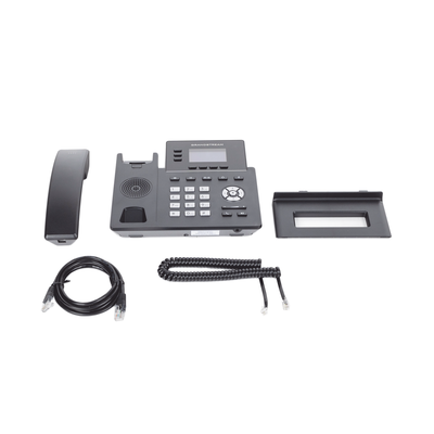 Teléfono IP GRP2603P: un dispositivo elegante con 3 líneas SIP, 6 cuentas SIP, PoE integrado y pantalla LCD de 132 x 64. Compatible con GDMS y soporte para múltiples códecs de audio.