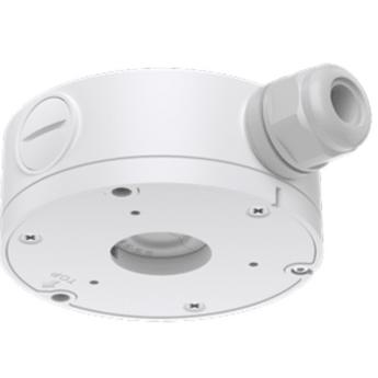 Caja de conexiones HA35JCBHBA 122.3 mm x ø122.3 mm x 46.0 mm 0.36 kg instalación versátil impermeable. Diseñada para cámaras IP de la serie 35 de Honeywell, fabricada en plástico color blanco, soporta montaje en techo y es adecuada para uso interior y exterior, facilitando la instalación en diversas ubicaciones.