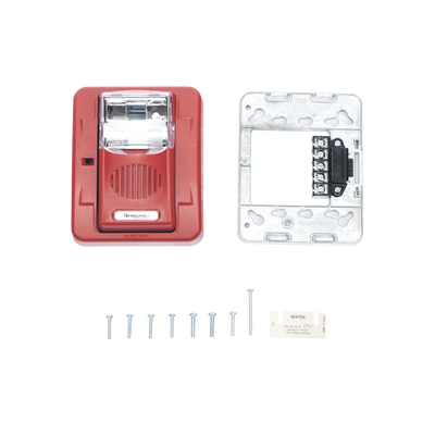 Sirena estrobo HEC3-24WR 24 vcc 15 a 110 cd montaje en pared color rojo opciones de candelas seleccionables tono mecánico