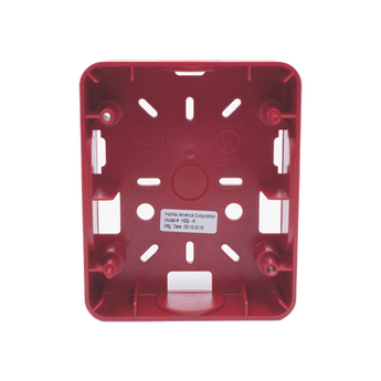 Caja trasera resistente HSB-R de Hochiki, hecha de plástico texturizado y disponible en colores rojo y blanco. Cuenta con un diseño seguro y un mejor agarre, facilitando el montaje gracias a sus pestañas.