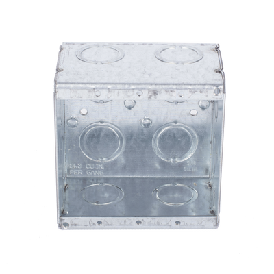Las cajas multigang de acero galvanizado de 2 1/2' de profundidad con entradas para tubería de 1/2' y 3/4'.