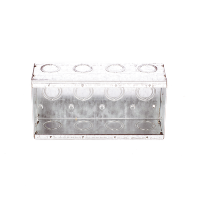 Caja multigang HUB-693 4 Gangs, profundidad de 2.5 in. Construcción en acero galvanizado y diseño soldado. Cuenta con 20 entradas para tubería, capacidad de 63.5 in3, con medidas de 3.7506 in de alto y 7.406 in de ancho, y pesan solo 1.581 lb. Ideal para instalaciones eléctricas residenciales y centros de datos.