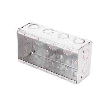 Las cajas multigang de acero galvanizado de 2 1/2' de profundidad con entradas para tubería de 1/2' y 3/4'.