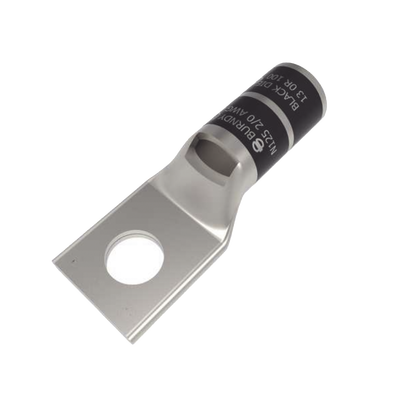 Terminal de compresión HUB-YA26-L6 de cobre 2/0 AWG 35 KV barril corto fácil instalación. Fabricado en cobre con revestimiento de estaño, este conector negro es ideal para aplicaciones eléctricas. Cumple con normativas RoHS, tiene un solo orificio para facilitar conexiones y garantiza una conducción eficiente de electricidad.