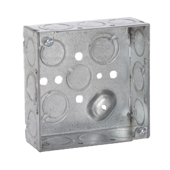 Caja cuadrada HUB189 4 x 4 in profundidad 1.563 in acero galvanizado diseño utilitario para instalaciones eléctricas completamente exponible