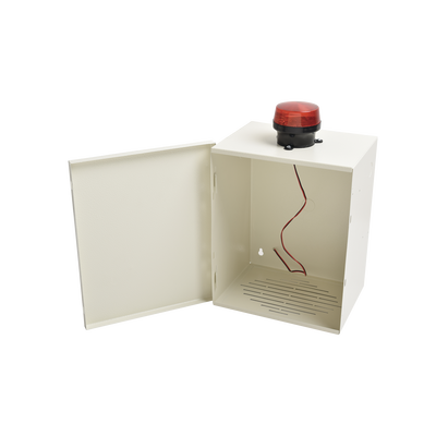 Incluye alarma visual color rojo (Estrobo) con tornillos de fijación.