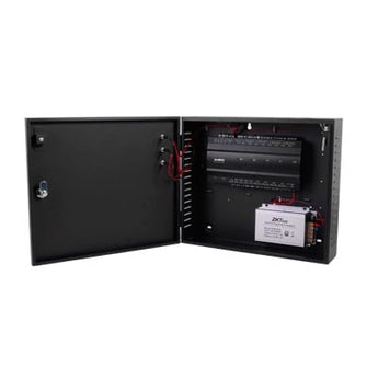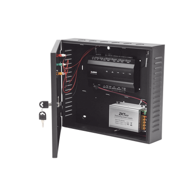 Controlador de acceso INBIO-260, ZKTECO. Controlador de accesos para 2 puertas con capacidad de 20,000 huellas y 30,000 tarjetas. Soporta comunicación TCP/IP, incluye gabinete metálico y fuente de alimentación 12Vcc/5A, dimensions 350 x 300 x 90 mm.