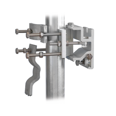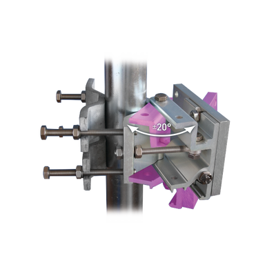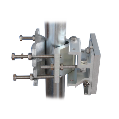 Soporte para antenas JDMW900AR compatible con JRMA038010/11, ajuste fino ±20° en elevación y azimuth. Diseñado en acero inoxidable para durabilidad y manipulación fácil. Instalación en mástiles de 40 a 120 mm, asegurando estabilidad en la instalación y óptima orientación de la antena.