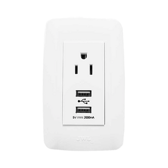 - Placa con 1 tomacorriente 2P + T/ 2 conectores USB para instalación directa en muros de espacios interiores del hogar, negocio o la oficina.