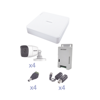 KIT TurboHD KEVTX8T4BG/A DVR 4 canales 1080p lente 2.8 mm audio coaxitron soporte 4 tecnologías. Incluye un DVR pentahíbrido que contiene HD-TVI / AHD / CVI / CVBS, fuente de poder regulada, lente de 2.8 mm con un ángulo de visión de 105°, y un alcance de luz blanca de 20 metros. Su instalación es fácil y permite la conexión de audio en todos los canales.