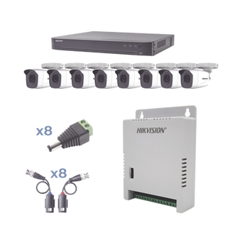 Kit de cámaras KEVTX8T8BW 8 canales 1080p visión nocturna 20m compatible con múltiples tecnologías. Incorpora un DVR pentahíbrido con soporte para HD-TVI, HD-CVI y Análogo, además de 8 cámaras bala de 1080p, visión nocturna de hasta 20m y audio en todos los canales.