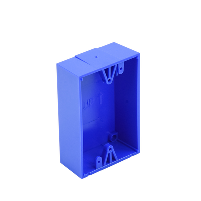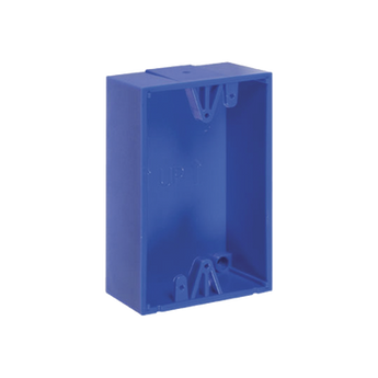 Caja trasera azul KIT-71100A-B de 1.5 pulgadas, fabricada en policarbonato resistente, ideal para sistemas de alarma. Compatible con botones de emergencia STI color azul, tiene un diseño compacto y funcional, perfecto para su instalación en superficie. Proporciona una solución segura y efectiva para alertas de emergencia.