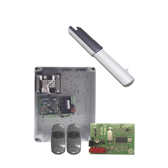 | Kit 001-U7220 incluye | 1 x Cuadro de mando 002-ZFN110, 2 x Brazo ATI 110V 001-A3010, 2 x Control remoto bicanal 001-TOP432EE, 1 x Receptor inalámbrico 001-AF43S, 1 Set de tornillería para montaje, 2 x Capacitores de arranque para brazos |