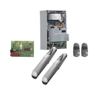 | El kit incluye | 2 x 001-AX3024 Brazos AXO para puertas de hasta 3 metros, 1 x 801-QA-0080 Cuadro de mando para brazos CAME, 1 x 001-AF43S Receptor para transmisores inalámbricos, 2 x 001-TOP432EE Transmisor inalámbrico de dos botones, 1 juego de tornillería y accesorios para montaje de los brazos. |
