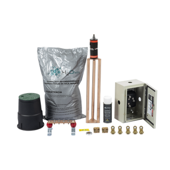 Kit de tierra física KIT-MASTER-400K-V2 cobre electrolítico 400 amp resistencia menor a 2 ohm electrodo magnetoactivo con brújula y nivel mantenimiento correctivo libre por 20 años