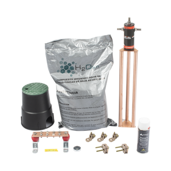 Kit de tierra física KIT-MASTER-45AB-V2 45 amp cobre electrolítico resistencia menor a 2 ohm electrodo magnetoactivo con brújula y nivel integración profesional compuesto h2ohm propiedades higroscópicas