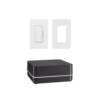 Kit de automatización KITRA2SELECT2 incluye RRSELREP2BL, RRD6CLWH (modelo sin tapa) y CW1WH. Control de iluminación inteligente y fácil instalación. Ideal para optimizar el uso de luz y aumentar la seguridad en el hogar.