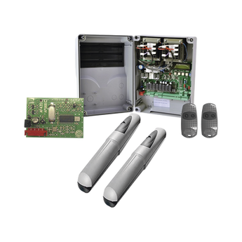 | Kit incluye | 2 x 001-AX3024 Brazos AXO, 1 x 002-ZLJ24110 Cuadro de mando, 1 x 001-AF43S Receptor inalámbrico, 2 x 001-TOP432EE Transmisores inalámbricos de dos botones, 1 juego de tornillería y accesorios para montaje |